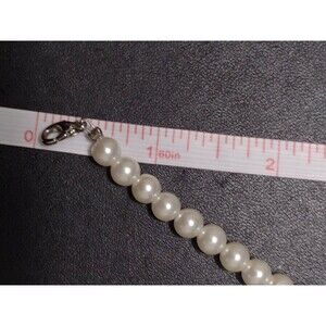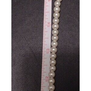 Gorgeous faux pearl necklace is made with wire. It has silver colored sparkly rhinestone bead accents. I believe the faux pearls are glass because of the heaviness of the necklace. I believe this was handmade.