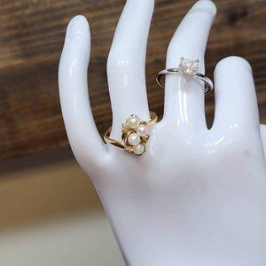Faux pearl with 14K gold plate Beautiful Rings SET OF 2