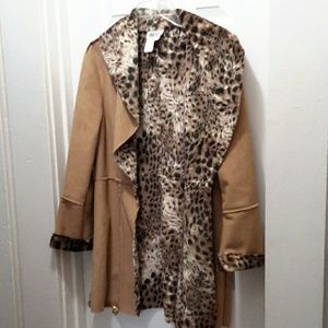 Coldwater creek tan and leopard coat . Tan faux suede outer, leopard faux fur inside. Really nice. Size petite med. No issues.