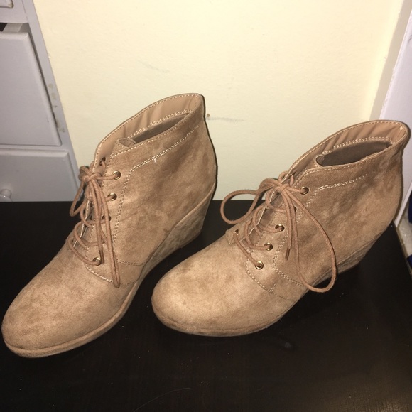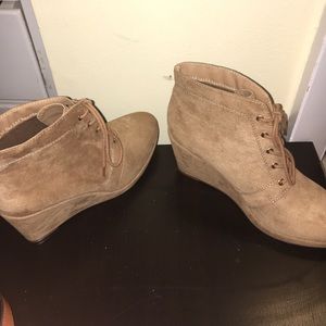 Comfortable faux suede heeled boots , with laces. Rarely worn, still in new condition!!