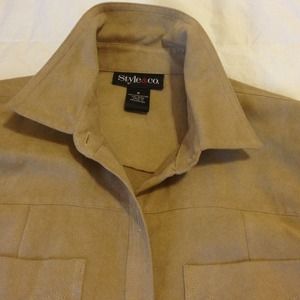 Style & co jacket that you can wear with a casual pair of jeans or slacks, or glam it up for work or dinner, or a night out at the movies. Really soft comfortable jacket.