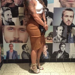 Faux suede high waist pencil midi skirt