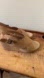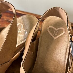 Faux suede tan cross front wedge heel sandals, EUC, womens 7.5