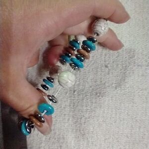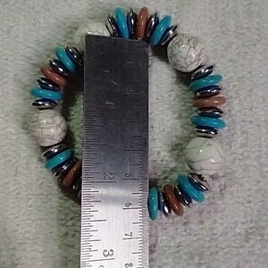 Faux turquoise white blue pink silvertone stretch Bangle bracelet