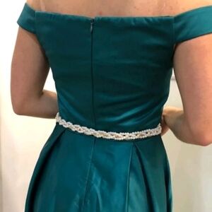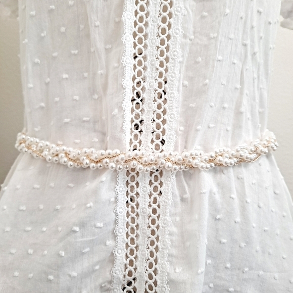 Women's beaded white faux pearls gold chain metallic bridal elegant formal evening braided waist belt, new no tags