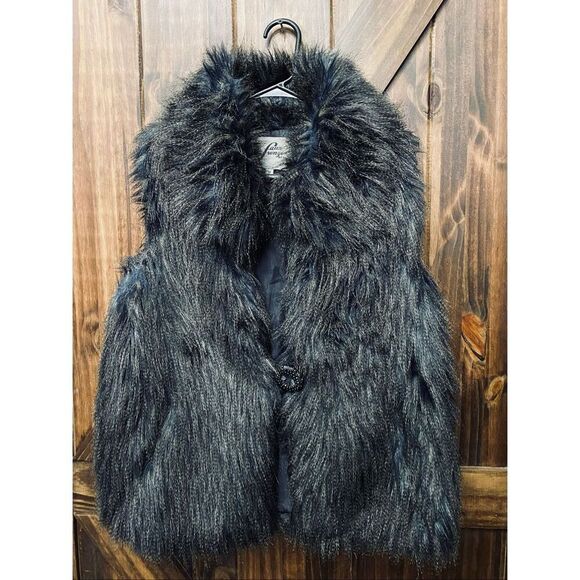Faux Frenzi by Dena blue/black faux fur vest