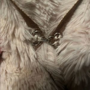 -soft, brown outer “suede” material lined with cream colored faux fur