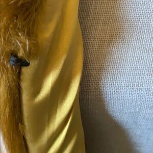 This faux fur vest is just beautiful! It looks and feels like luxury. It is a heavy vest. Rich olive green color with green lining. Hook closure at top. Underarm across is 19”. Length is 23”.
