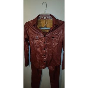 Lovely 2pc Faux Leather Pant Set. Long sleeve top with 6 large snap closure 26" long and 18" armpit to armpit