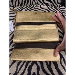 Ladies super cute faux leather Trifold wallet. Features change compartment, ID pocket, credit card compartments and detachable wristlet strap. Excellent condition. New with tags.