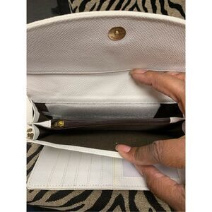 Ladies super cute faux leather Trifold wallet. Features change compartment, ID pocket, credit card compartments and detachable wristlet strap. Excellent condition. New with tags.