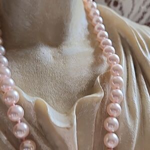 Vintage Icing faux pearl pink hued necklace measures 23"