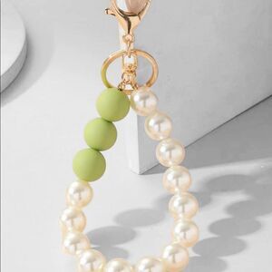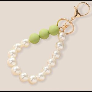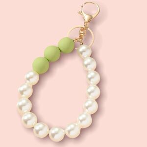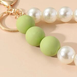 The adorable faux pearl beaded key ring consist of beaded chain, key ring, and lobster clasp.