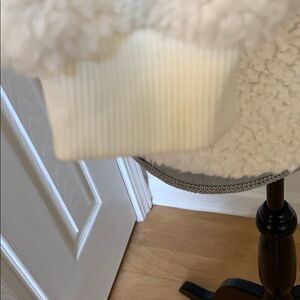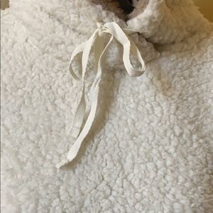 This cute pullover hoodie jacket will be perfect for any cold day. Ivory color with beautiful faux fur inside the hoodie, which makes it super warm. Underarm flat across is 22”. Shoulder to hem is 26”. Sleeve is approximately 21”. New without tags.