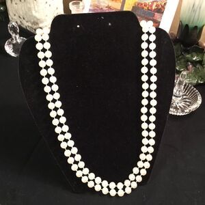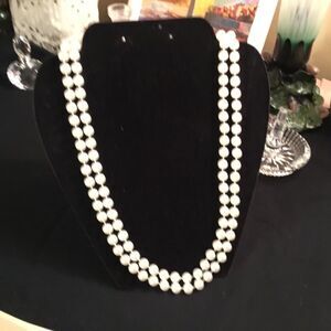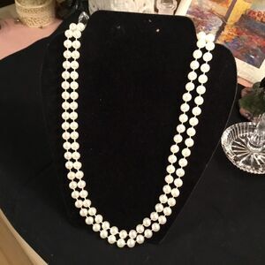 Faux white pearls approx. 6 mm in size measures 46” in length. Over the head - no clasp. Great to double or triple. $8 each or bundle 3 of same price for $15 and save.