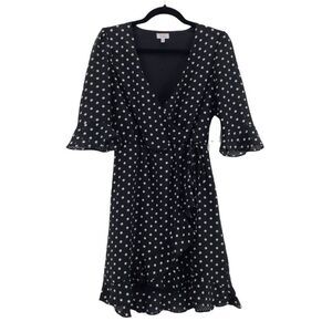 Faux-Wrap Mini Dress by Q + A Los Angeles with Polka Dot-Print - Black/White, Juniors S
