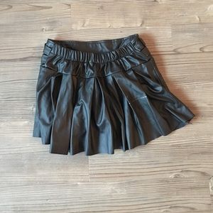 This miniskirt is made of a comfortable faux-leather and has a stretchy waistband. Underneath the skirt is a pair of faux-leather black shorts that are part of the skirt for privacy. There are buckles on the waistband that can be used to tighten the skirt too!