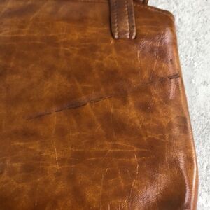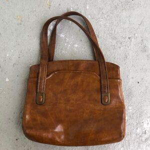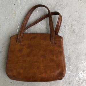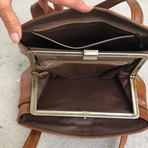 Nice vintage Kelly style bag but please look at the pictures it is not perfect. It has a mark across the back could possibly polish out measuring across the top is 10.5” x 8.5 x 3, handle job is 5.5. Multiple pockets with vinyl inside.
