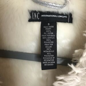 I love the uniqueness of this jacket! Silver metallic faux suede which is super soft. Size small. Has the faux fur throughout. No flaws