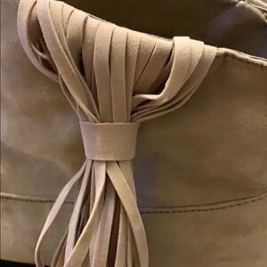 Size is M 7/8. Faux Suede Booties with fringed sides.