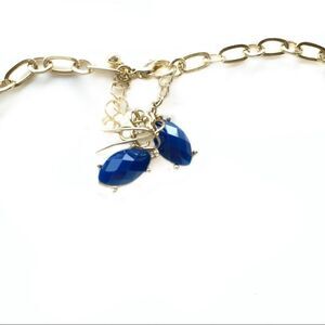 Fabulous fun necklace made of faux tortoise with royal blue oval faceted acrylic stone and glass and acrylic rhinestones, matching pierced dangle earrings..Beautiful matched set new without tags. necklace 16”w/3” extender.