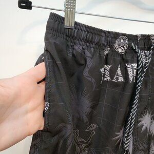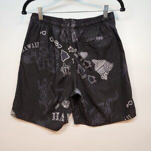 Favant Hawaii Men's Premium Swim Trunks Elastic Waist Mesh Lining Turtle Hula girl island lizard palm trees.