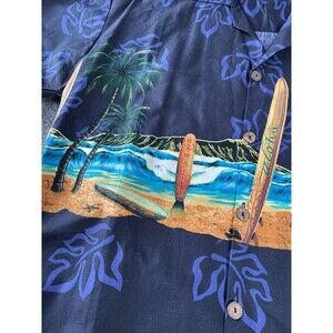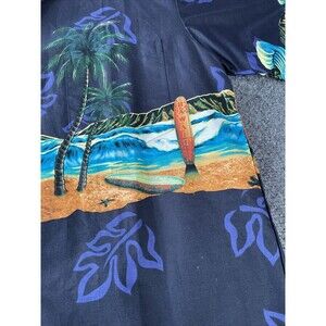 Favant Men's Medium Hawaiian Shirt Black Blue Palm Trees Surfboard Cotton