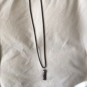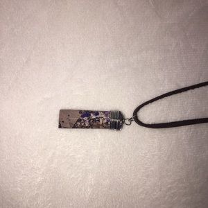 Adorable purple speckled pendant necklace on chocolate brown suede!! Super fun, but not too much!!
