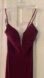 Elegant burgundy dance costume. Features a deep V-neck and spaghetti straps. Perfect for performances.