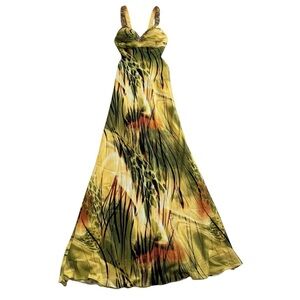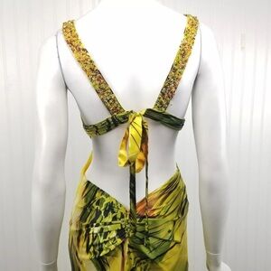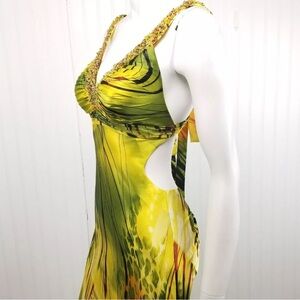 Faviana Couture Tropical Gown Size 2 Cutout Back Beaded Embellished Formal Prom