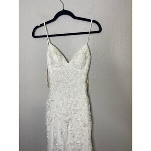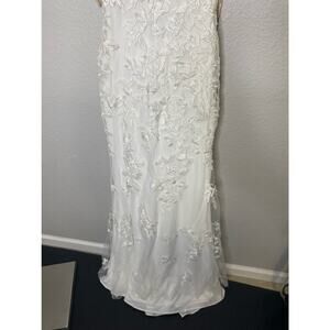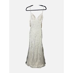 Faviana Women's Lace Tulle V Neck Lace Up Back Tulle Gown Adjustable Strap SZ 2