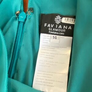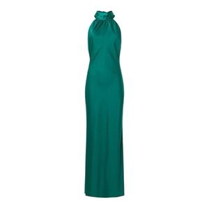 Faviana Halter Gown Long Maxi Dress in Green Satin Size 14