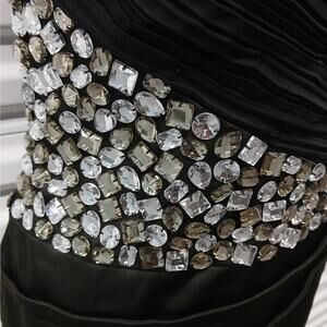 Faviana Womens Cocktail Dress Size Small Black Formal Strapless Crystal Rhinestone Beaded Y2K Glam