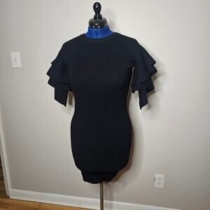 Favlux Black Knit Sweater Sheath Mini Dress with Large Ruffled Sleeves Size L