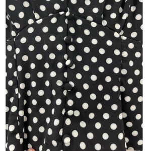 Favlux Deep V-Neck Polka Dot Faux Button Front Pullover Top Small Fitted Cropped