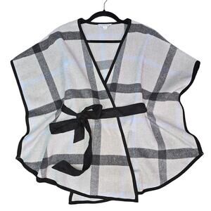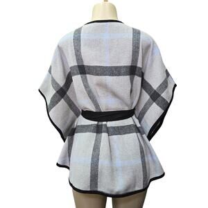 Favlux Fashion Belted Poncho Womens Small Grey Plaid Wool Equestrian Western