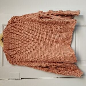 Favlux Knit Sweater Size Large Pink Balloon Sleeve V Neck Relaxed Fit