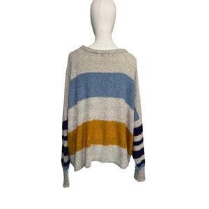Favlux Oversized Striped Boucle Knit Sweater Gray Blue Mustard Large Cozy Soft