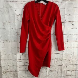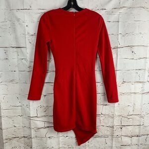 Favlux Red V-Neck Ruched Mini Dress Long Sleeve Size Small Y2K Cocktail Party