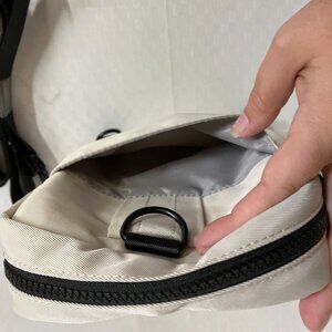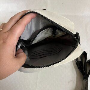 Favnac Unisex White Fanny Packs Crossbody Bag With 2 Black Shoulder Straps