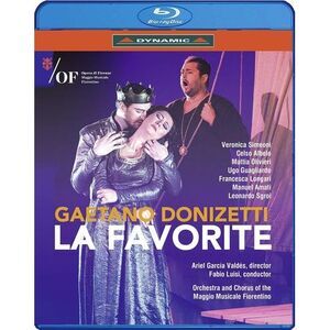 Gaetano Donizetti's La Favorite was rather laborious in the making: it started out as a re-working of L'Ange de Nisida, to which the composer added parts taken from some other operas of his. The work, which was premiered at the Opéra of Paris, is set in 14th-century Castile and tells the story of the hapless love between Fernand, who has second thoughts about taking holy orders and leaves the monastery of Santiago de Compostela, and Leonor, the mistress of king Alphonse XI. It is an intimate drama, where history and politics are but the backdrop to the protagonists' passions and torments. Fabio Luisi's conducting is both measured in balancing the orchestral sounds, and personal, varied and vigorous. The orchestra is crystal-clear, neat in it's accompaniment, neither subject to the voices nor prevaricating. Veronica Simeoni (Leonor), Celso Albelo (Fernand) and Mattia Olivieri (Alphonse) give excellent vocal and acting performances.