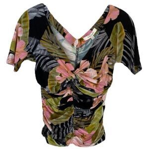 Favorite Daughter Bad Decisions Floral Ruched V-Neck Top NWT Size Extra Small