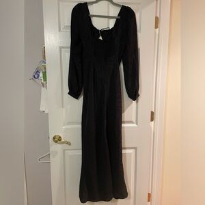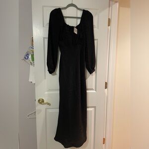 Elegant black maxi dress. Long sleeves. Square neckline. Perfect for evening wear.