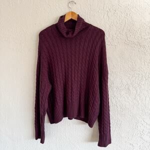 Favorite Daughter Cable Knit Turtleneck Plum Sweater