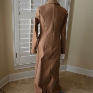 Camel Color. Long Sleeves w/Button Closure. Notched Collar. Back Vent. Functional Size Pockets. Fully Lined. Heavy Weight. US Size Small. Dry Clean Only. Slight Piling through out. Some staining at hemline.