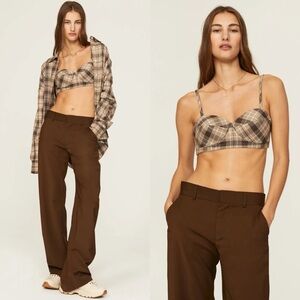 Favorite Daughter Ex Boyfriend Plaid Bra Top Brown Beige