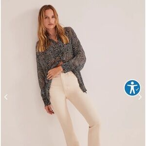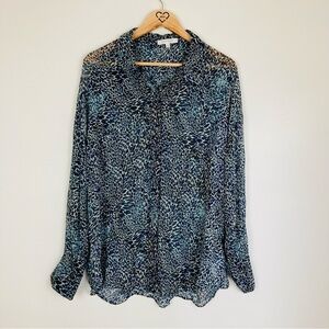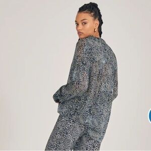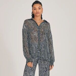 Favorite Daughter semi sheer blue and black cheetah print button down shirt.