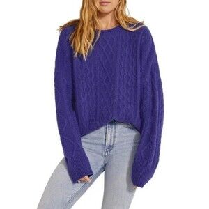 Favorite Daughter Sweater Womens Medium Purple Cable Merino Cashmere Crewneck
