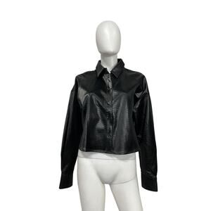 Favorite Daughter 'The Crop' Black Polyurethane Ex-Boyfriend Shirt Size M: slightly cropped styling, an oversized button up cut from black, crocodile-embossed vegan leather with a relaxed fit and pointed collar, with the shortened length.