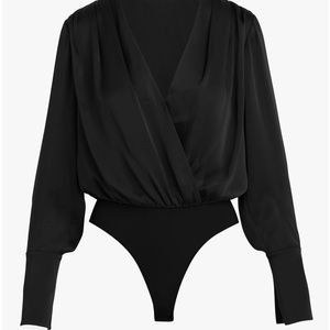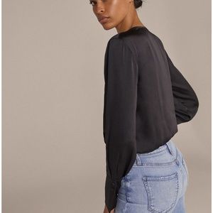 It's Swipe Right for this satin bodysuit with a draped and pleated neckline and button cuffs. This date night darling pairs best with high rise denim and heels for cocktails on the couch, dinner downtown, or a virtual meet and greet.